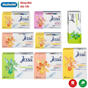 Tampon Jessa Super 4 giọt cũng là một loại băng vệ sinh được sản xuất tại Đức. Được thiết kế với dạng nút, bề mặt băng là lớp bông mịn, có các rãnh cong giúp tampon thích ứng với âm đạo. Chất liệu cotton không chỉ thấm hút tốt, giúp bạn không còn nỗi lo bị tràn kinh nguyệt mà còn tạo cảm giác thoải mái tự tin kéo dài cho bạn.